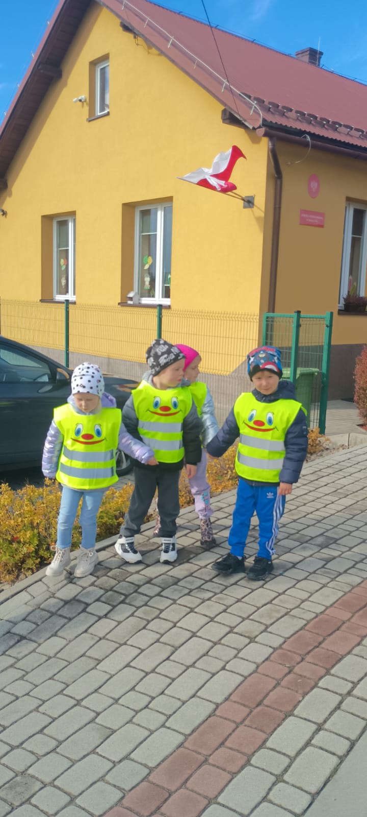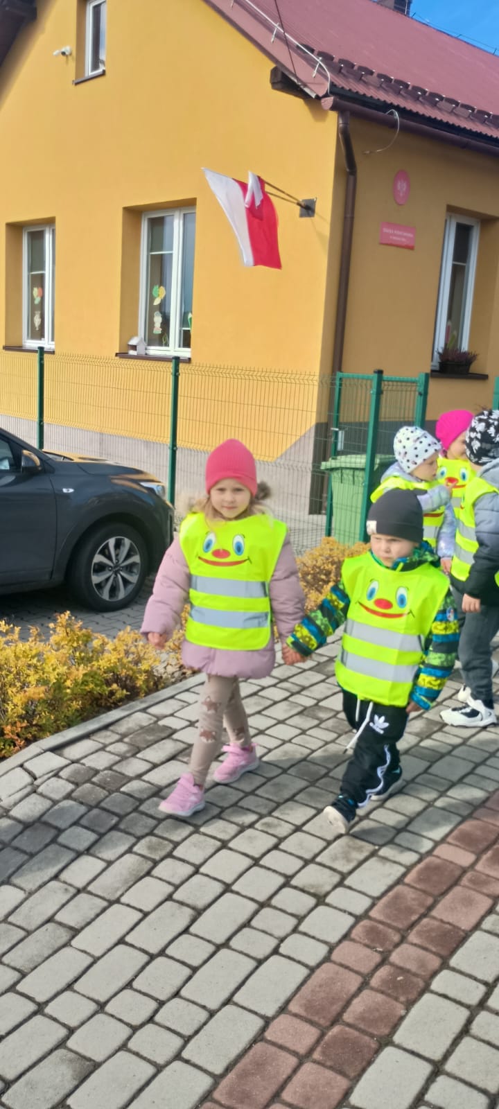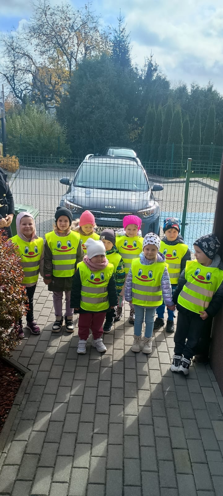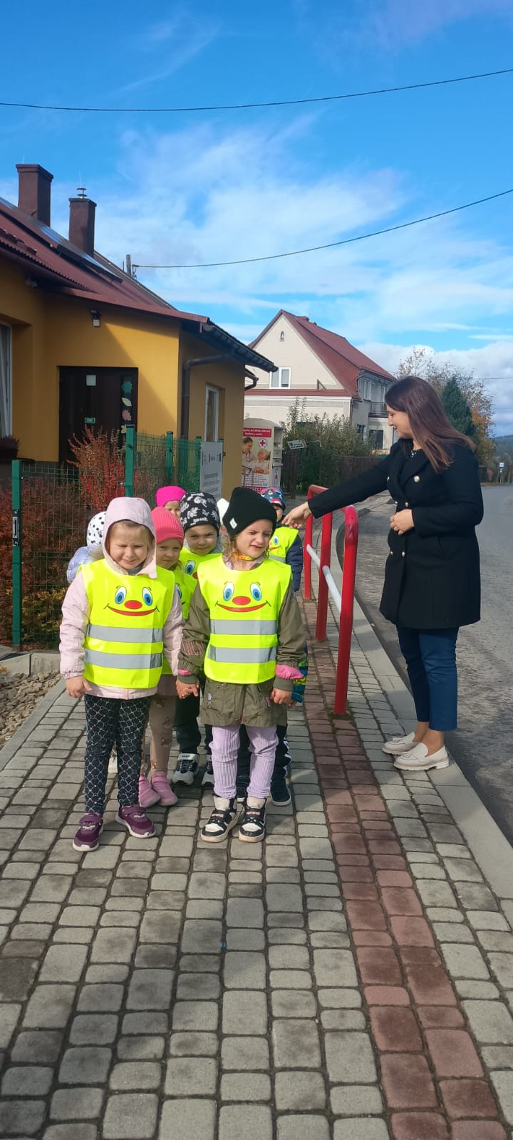 Dzięki kamizelkom odblaskowym przedszkolaki były doskonale widoczne, co