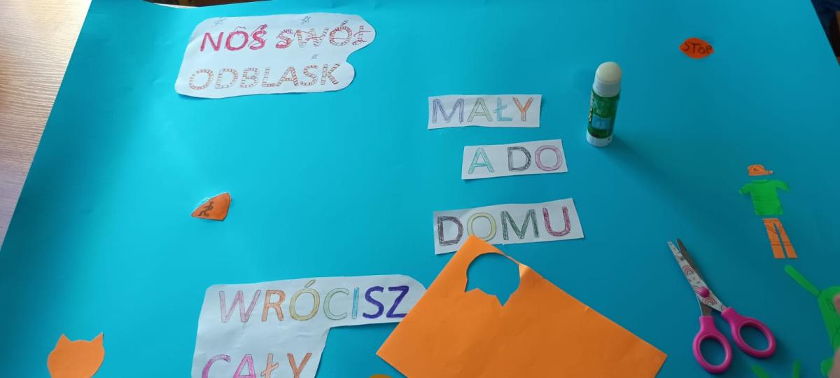 „Odblaskowa szkoła” podczas których uczniowie przygotowywali plakaty