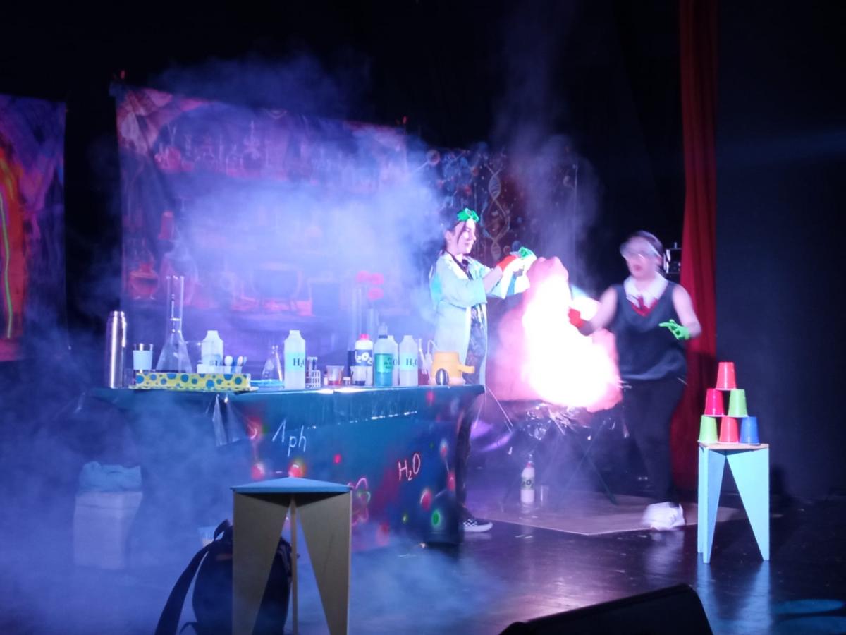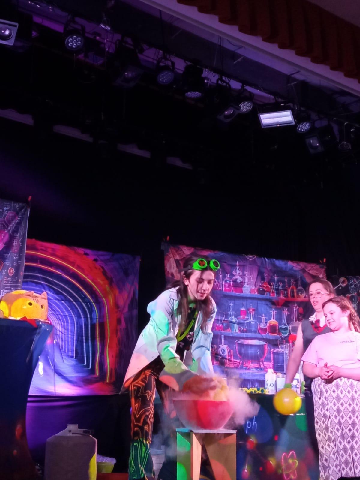 Młodzi uczestnicy obserwowali powstawanie niezwykłej piany, efektowne zmiany kolorów oraz widowiskowe „chmury” dymu. Pokaz w ciekawy i zabawny sposób połączył naukę z rozrywką, wzbudzając w dzieciach duże zainteresowanie światem chemii.