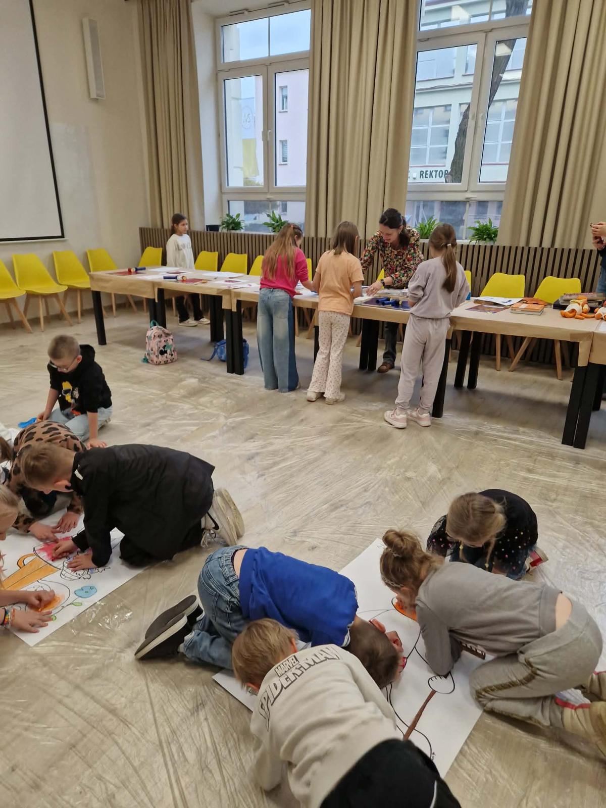 W dniu 20.04.2026r. uczniowie klas I-III odwiedzili Bibliotekę Pedagogiczną w Nowym Sączu.Na miejscu spotkali się z autorką książek dla dzieci panią Urszulą Gawron- Leśniarą. "Miłomruczka i Złotołapek", to seria niezwykle ciekawych książek dla dzieci,pięknie ilustrowanych.To książki z gatunku tych,które czyta się "jednym tchem".W trakcie spotkania z ich autorką dzieci dowiedziały się wiele ciekasych rzeczy,a także miały okazję pięknie pokolorować pastelami ilustracje ukazujące bohaterów tych książek.